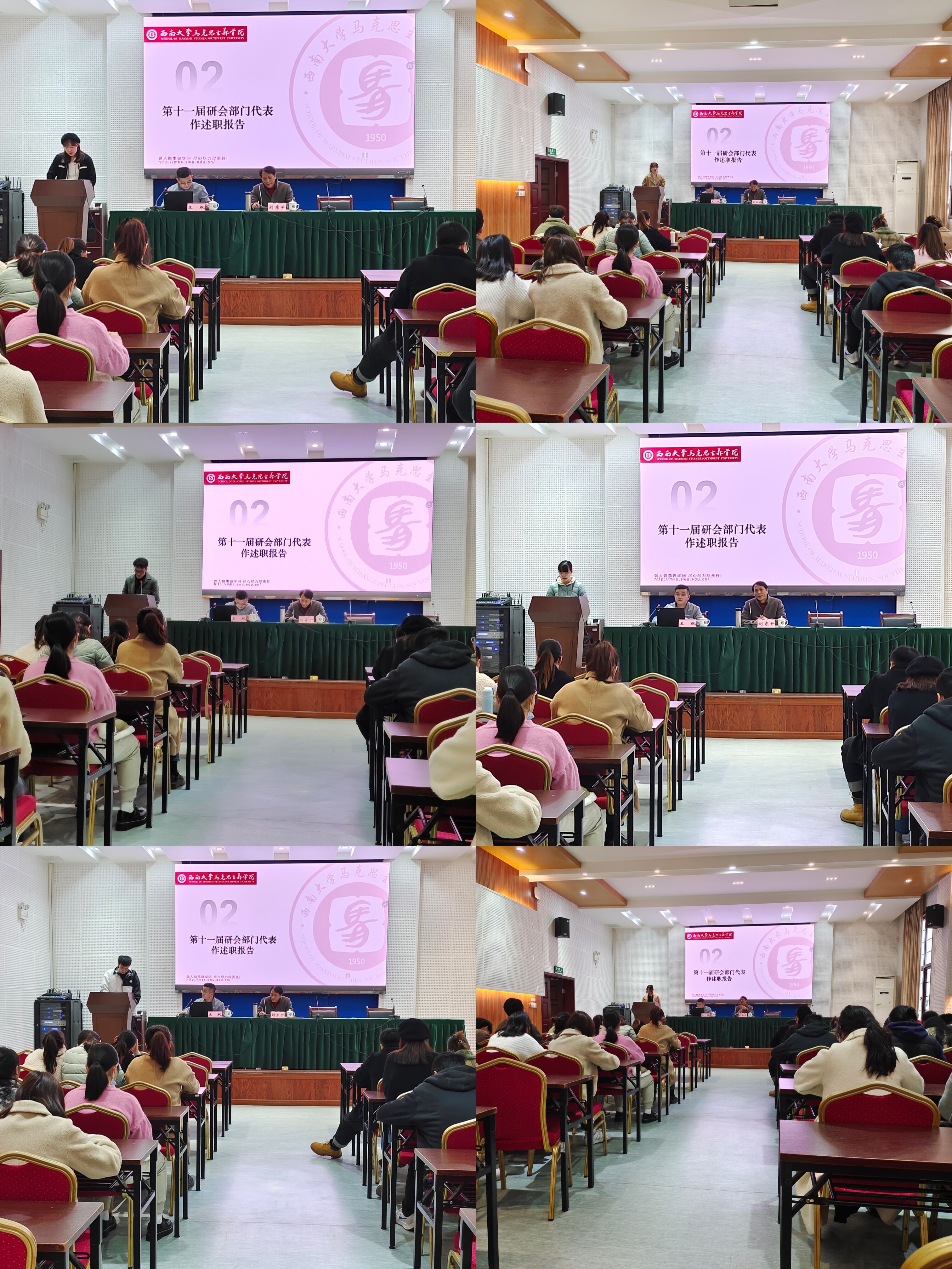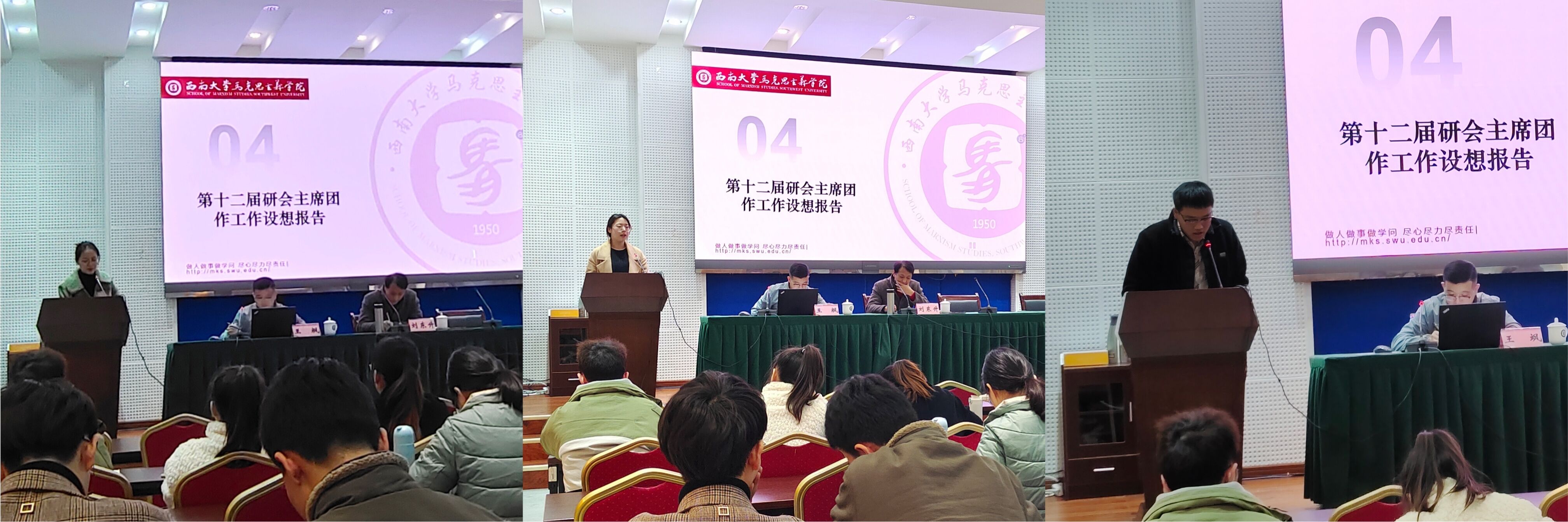 接着由第十二届研会主席团作工作设想报告。第十二届研会主席团代表陈可姝强调研会主席要在公司和研究生之间建立良好的信息传递模式,团结和高效糅合研会成员,指出接下来研会干部要注意组织建设和发展管理指导原则、工作细则和重大问题,设置马院研究生会的规章制度,加强团队建设,构建研究生会成员的激励机制,让马院研究生会在下一次的综合测评中更进一步、更上一层楼。吴贝贝强调研会要坚持为老师和同学们办实事、办好事的宗旨,秉持完成本职工作的理念,加强干部自身素质建设,推进研会体制改革,加强研会宣传力度,加强研会、研会成员、研究生之间的联系。刘大鹏指出要沿用上学年研会工作中的“好办法”,改进综合考核的“老办法”,探索与校级组织、本科员工会联动的“新办法”。同时,他指出未来研会工作要“刀刃向内”,加强“对外交流”,真正做到服务同学,营造研会宣传氛围,增加为同学办事的深度,提升为同学服务的温度,提高工作的速度,扩展研究生会工作的广度,努力建设一支高服务、高质量、高效率的研究会工作队伍。