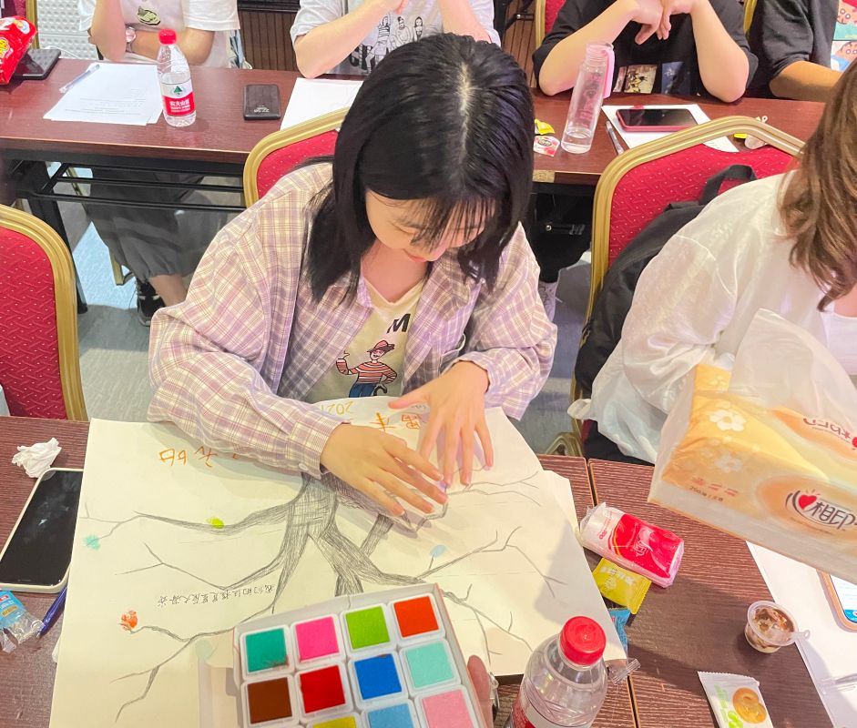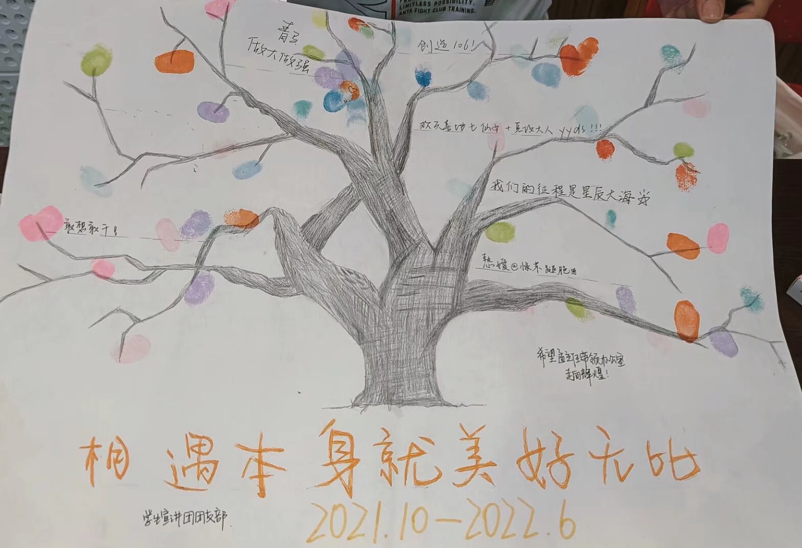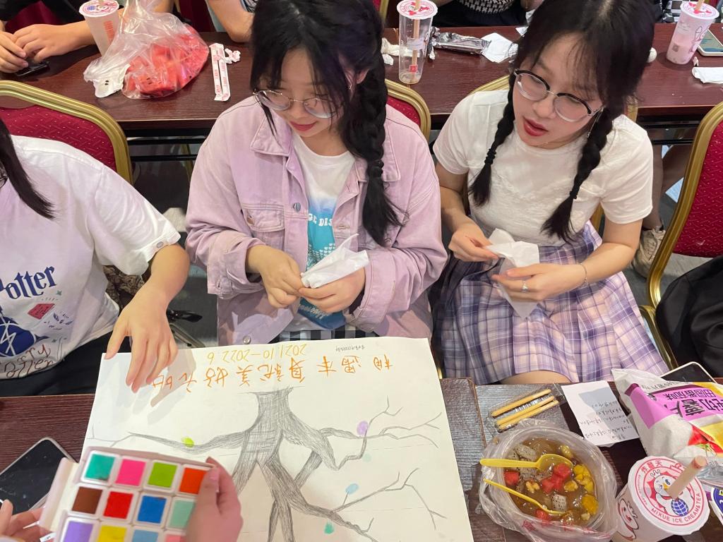 “随时间流逝的记忆不是过往云烟,刻在时光里的印记是走向未来的起点。”在心与心相印环节,团员们共同创作出手印画,并以部门为单位写下寄语。手印画的创作让团员们感受到了集体归属感,增强了凝聚力,而写下的寄语则表达了团员们对未来最美好的祝愿和期许。
