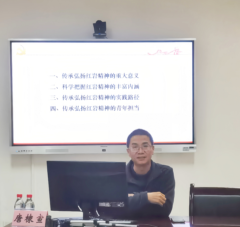 2023年4月7日下午,红岩菁英班在公司412会议室成功举办红岩精神专题讲座。此次讲座邀请了伟德国际1946唐棣宣副教授,讲座题为“传承弘扬红岩精神 走好新赶考之路”。讲座由班长杨晓龙主持,红岩菁英班全体学员参与。