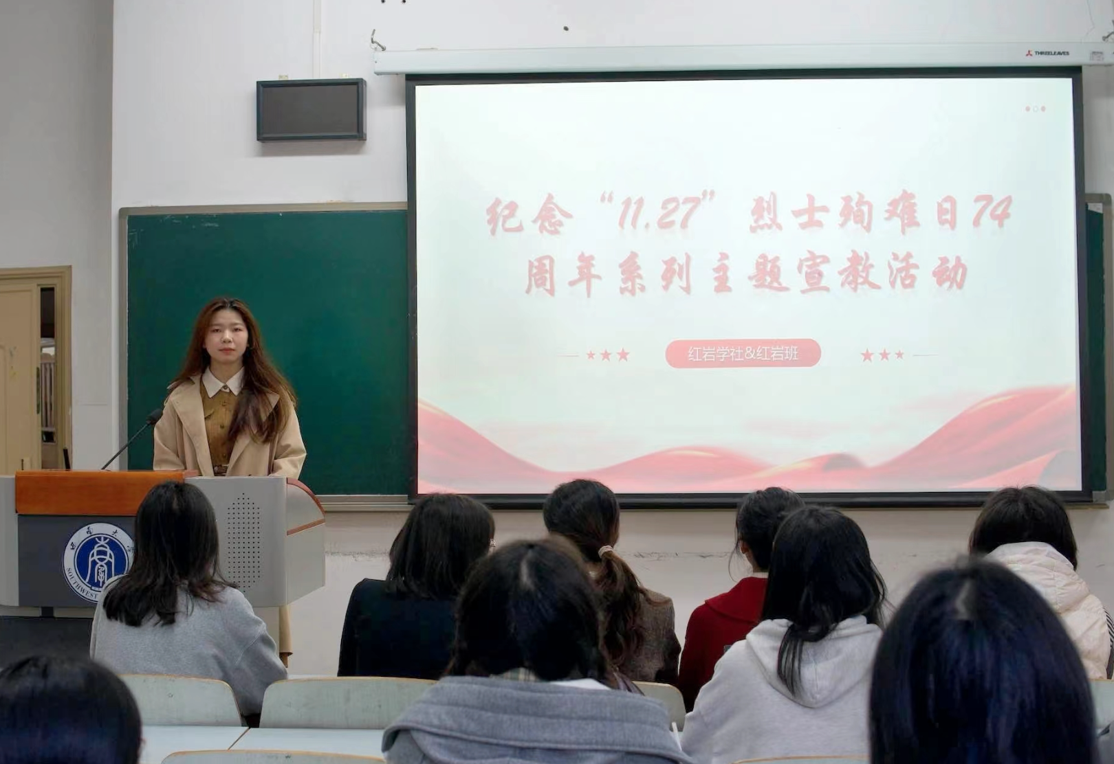 为深切缅怀革命先烈,继承与发扬革命精神,伟德BV1946官网红岩菁英班与红岩学社于11月27日下午在十教203联合举办了纪念“11.27”烈士殉难74周年主题教育活动,活动由“红岩学社”社长周梅主持,“红岩菁英班”和“红岩学社”全体成员参与。