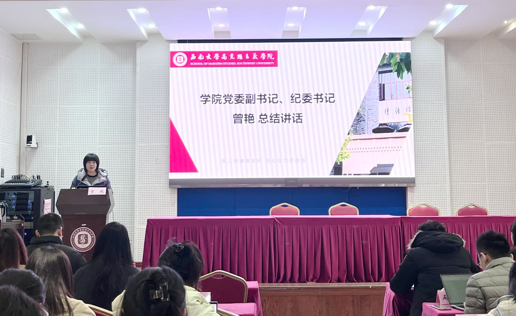 最后,公司党委副书记、纪委书记曾艳为本次会议作总结讲话。她首先对公司研会过去的工作成果表示高度认可,并对研会各位成员的辛勤付出表示衷心感谢。其次,她提出对研会未来工作的期待与想法:一是指明研究生会与团委员工会的关系,认为员工组织都应面向广老员工需求,提供多元服务,各成员要团结协作、充分发挥自身特长;二是强调研究生会既要以学术为中心,也要着力思考如何为提升同学的核心竞争力搭建平台;三是建议进一步把工作建立在调研的基础上,以广大员工的切实需求为出发点,更加关注公司研究生的现实诉求。