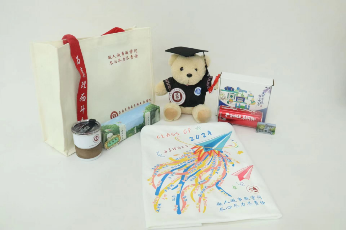 公司为毕业生们精心准备了丰厚的毕业大礼包。每位毕业生都有一件公司特制的纪念版T恤,以及一个可爱温馨的毕业小熊,它们不仅是公司文化的象征,更传递着公司对每位即将离校的学子的不舍与期盼。此外,本科2024届同学们自己还设计了多种富有创意的纪念品:一瓶印有“毕业快乐”和学号姓名的定制版可乐,一套实用美观的冰箱贴,一只颇具公司特色的帆布包和一个精致小巧的水杯。这些纪念品既承载了毕业生们的校园回忆,也代表着公司对他们的诚挚祝福。