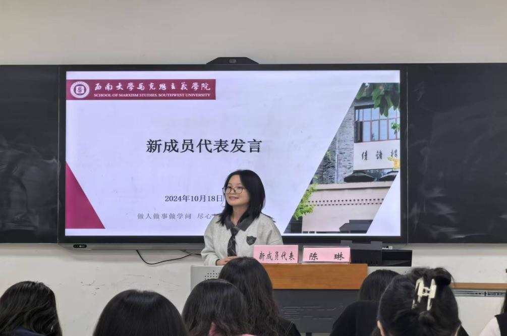 新成员代表陈琳表示加入伟德国际1946研究生团总支、研究生会深感荣幸,并表示自己明确自身所肩负的责任,也愿意为开创研究生会发展新局面而不懈努力。