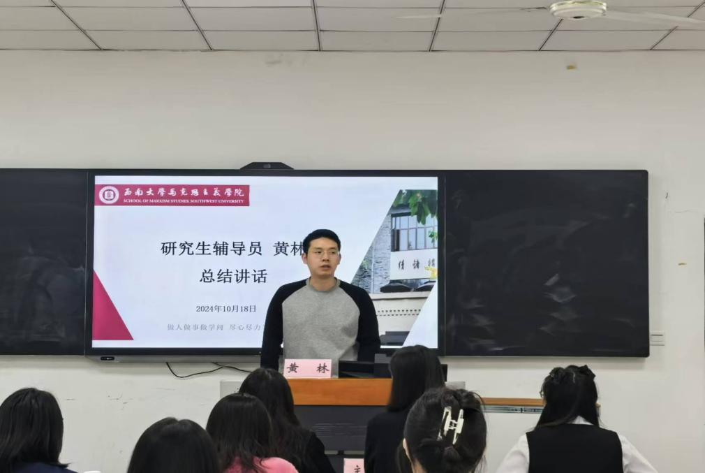 指导老师黄林对研究生会过去的工作成就给予了肯定,并就“研途筑梦”系列工作进行了详细解读,希望各部门成员之间能够协同联动,形成合力,共同谱写研究生会发展新篇章。