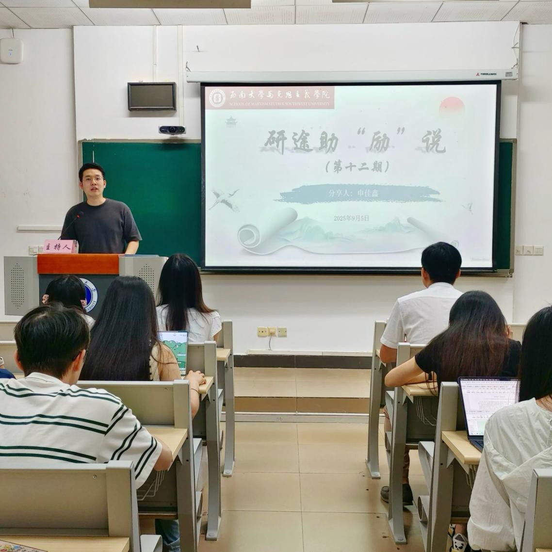 为帮助研究生明确职业发展方向,进一步把握教师招聘的求职关键,科学规划职业生涯道路,9月5日,伟德国际1946在10教306教室举办研途助“励”说第十二期活动。本次活动邀请到伟德BV1946官网附属中学政治教研室主任申佳鑫老师做“三新视域下的思政学科教师招聘要求及应对策略”为主题的报告。2023级和2024级高校思政课教师后备人才专项计划成员及部分研究生参与活动。