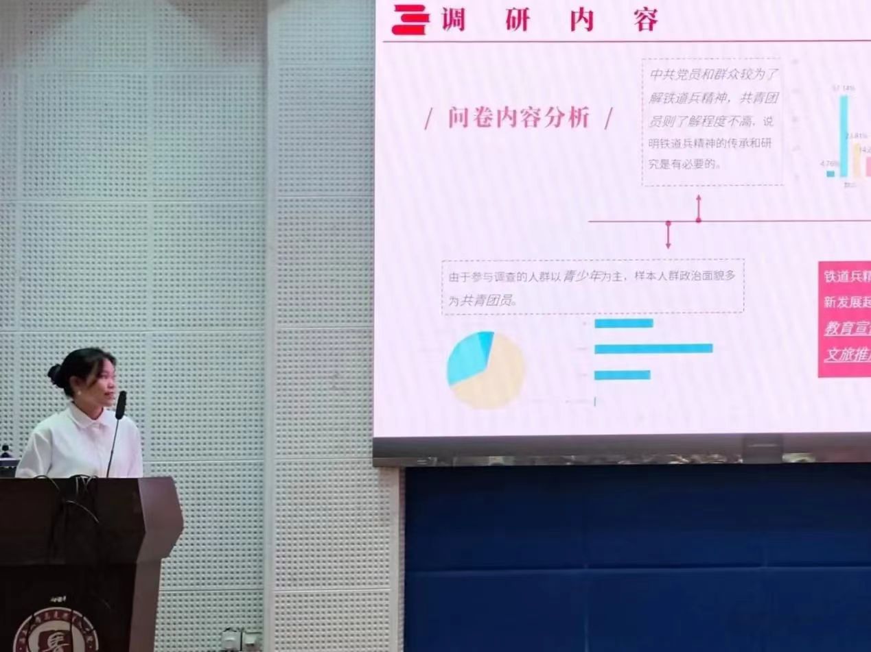 第一环节为各队伍展示和问答,每支队伍各有特色,面对老师的提问能提出队伍的独到见解。峥嵘岁月寻访队生动讲述了重庆三位革命老兵倾心交谈的心路历程,从现状探究、困境审视和优化路径三方面提出弘扬先辈革命精神的路径。千秋红岩小分队团队成员充分发挥跨学科优势,对景区发展模式进行多维度分析,对重庆红色景区现状研究提出红色文化可持续发展的路径。琼崖六连队通过详实的调查数据阐释了六连村在振兴发展中以“红色+四引领两融合”为内生机理的模型构建。心如止水小分队聚焦重庆两面特殊的五星红旗,娓娓道来其中的故事,挖掘背后的红色精神,从教学内容和教学手段等方面提出建议。铁道追梦人队走进铁道兵重庆烈士陵园,探索三线建设时期旧工业发展的新引擎,并对调研存在的问题进行了自我剖析。天生有为队寻访西南地区红色文化景区,路线贯穿重庆、贵州和云南,运用问卷数据分析红色文化景区存在的问题并提出保护建议。天生快乐队建立“M-S-E三维三化”模型分析影响指数为调研做支撑,并对现状进行学理性分析提出建议,其实践成果丰硕。