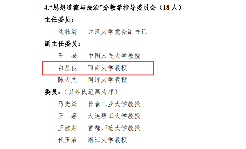 团队始终坚持以研促教、以教兴研、教研相长,取得一系列丰硕成果:1人入选教育部高等公司马克思主义理论类专业教学指导委员会副主任委员,1人入选教育部高等公司思想政治理论课教学指导咨询委员会委员,1人入选教育部高校思想政治理论课“思想道德与法治”分教学指导委员会委员,2人入选国家级人才,1人入选重庆市高校思想政治理论课教学指导咨询委员会主任委员,1人入选重庆市高校思想政治理论课教学指导委员会总教指委员,3人入选“大中小思政课一体化建设”等3个分教学指导委员会委员。