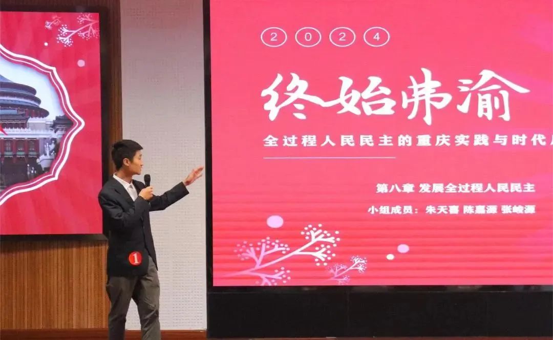 此次入围决赛圈的11支队伍,呈交的作品涉及以人民为中心、新质生产力、全过程人民民主、国家安全、生态文明建设、“一带一路”倡议等主题。在课程展示过程中,各参赛队伍成员精神振奋、情绪激昂,意气风发、神采奕奕,以严密的逻辑、准确的语言表达理论知识,以预设的情景、互动的沟通演绎独到见解,以典范的人物、周边的鲜例流露深情感悟,充分彰显了新时代好青年的特质。